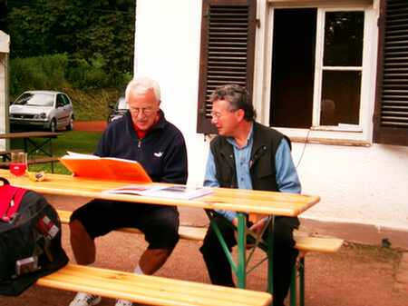 M. Lasch u. M. Roscher beim durchstöbern der Chronik
