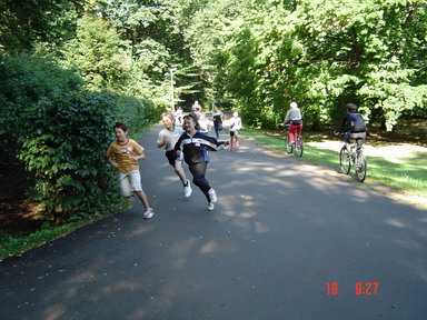 Teilgenommen haben 12 Kinder, 4 männlich 8 weiblich. Begonnen wurde mit einer Aufwärmrunde im Stadtpark. Vorturner war Jugendwart Andreas Roscher. Anschließen wurden 3 Gruppen gebildet und unter Mitarbeit von Julia Groß, Yvonne Haag, Christine Roscher und Manfred Roscher Athletik absolviert. Dazu gehörte Ballfangen, Balljonglieren, Linienlauf, Seilspringen und Zielwerfen mit Tennisbällen. Abgeschlossen wurde dieser Teil mit einem 5 Minuten Dauerlauf. |