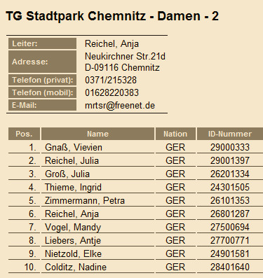 | 7/732 | So 24.06.2007 09:00 | Postsportverein Chemnitz | Ausw?ts | 1 : 5 | 3 : 11 | ![]() |