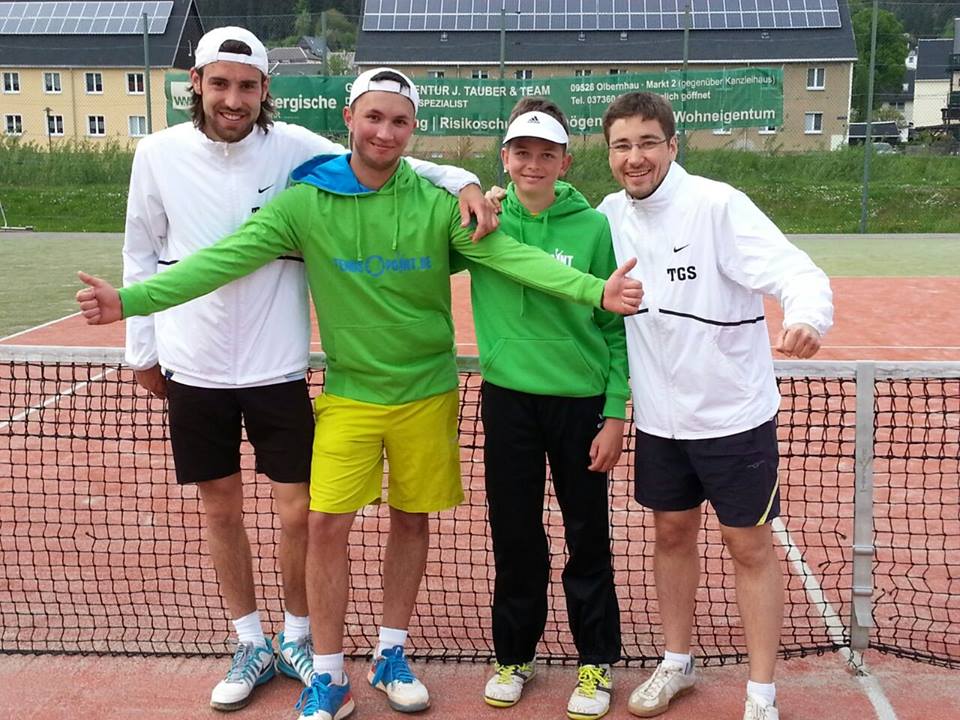 TG Stadtpark Open 2018 - Lucas siegt gegen Maxim im reinen Stadtparkfinale, Manja erkämpft Platz 3 im Damenfeld![]() Maxim (l.) und Lucas (r.), Finalisten des A-Feldes Die Felder Herren A und Herren B waren wie im Vorjahr mit jeweils 16 Teilnehmern vollbesetzt, das Ziel volles Damenfeld wurde leider erneut nicht erreicht. Bei optimalen äußeren Bedingungen durften neben hochmotivierten sächsischen Tennisspielern aus nahezu allen Teilen des Freistaates auch wieder weitgereiste Gäste aus den anderen Teilen der Bundesrepublik begrüßt werden. Während auf den Plätzen mit vollem Ehrgeiz und Einsatz um jeden Punkt gekämpft wurde, ließen sich die Sportler, Fans und Zuschauer mit Obst, Kaffee und Kuchen sowie Pasta oder Gegrilltem kulinarisch verwöhnen. Natürlich wanderte der Blick zwischenzeitlich auch auf den heiligen Rasen, wo zunächst in Satz 5 zwischen Djokovic und Nadal mitgefiebert wurde und anschließend "Angies" Triumph bejubelt werden durfte. Doch das Sandplatztennis, das im Stadtpark geboten wurden, musste sich absolut nicht verstecken. Im Damenfeld spielte sich Manja ins Halbfinale vor, musste sich dort jedoch der an Position 2 gesetzten Theodora-Lisandra Orlovschi (CTC Küchwald) geschlagen geben. Mit einem anschließenden souveränen Sieg sicherte sich Manja einen tollen dritten Platz. Parallel boten Theodora-Lisandra und die topgesetzte Julia Glöckner (1. TC Zwickau) einen offenen Schlagabtausch, den Theodora-Lisandra im Champions-Tiebreak für sich entscheiden konnte. ![]() Von links nach rechts: Theodora-Lisandra Orlovschi (1. Platz), Julia Glöckner (2. Platz), Manja Mehlhorn (3. Platz), Anna Rau (4. Platz), Denise Bohne (Siegerin Nebenrunde) und Sophie Körnig (2. Platz Nebenrunde) Erst im Endspiel gelang es Jakob Heinze (SV TuR Dresden) ihn dann doch ein wenig zu fordern, musste sich jedoch auch in zwei Sätzen geschlagen geben. ![]() Von links nach rechts: Tobias Dimmel (4. Platz), Tim Hoidis (1. Platz), Hytham Elsadek (3. Platz), Jakob Heinze (2. Platz) Während Jörg und Tobias eine schwere Auslosung erwischten und leider bereits in ihren Auftaktpartien die Überlegenheit ihrer Kontrahenten anerkennen mussten, spielten sich Lucas und Maxim bis ins Finale vor. Maxim wollte in der Neuauflage des Finals von vor zwei Jahren (damals noch im B-Feld) Lucas "vom Thron stoßen". Ihm waren jedoch die Strapazen des Halbfinales deutlich anzumerken, sodass Lucas recht souverän den Sieg verbuchen konnte und erneut den Titel gewann. Jörg kämpfte sich zudem durch die Nebenrunde und konnte diese siegreich beenden. ![]() Von links nach rechts: Elias Pöschke (3. Platz), Maxim Kling (2. Platz), Lucas Graichen (1. Platz), Jörg Hilbert (Sieger Nebenrunde), Eric Euchler (2. Platz Nebenrunde)