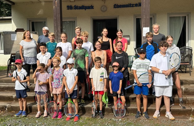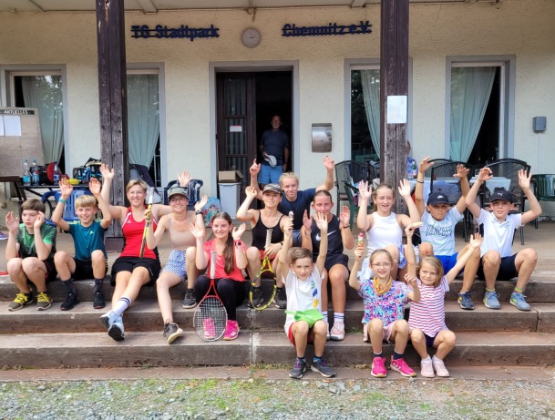 Kinder- und Jugendtag im StadtparkAm Samstag, dem 26.8., luden wir wieder die Kinder und Jugendlichen der Chemnitzer Tennisvereine und dem näheren Umland auf unsere Tennisanlage im Stadtpark ein. Wie bereits in den letzten beiden Jahren konnten sich die Kinder und Jugendlichen mit gleichaltrigen anderer Vereine messen, ihr Talent zeigen und Kontakte knüpfen.Obwohl die Anzahl der teilnehmenden Vereine mit TC Altendorf, TSV IFA, TV Siegmar und unseren Stadtparkern aus Chemnitz sowie dem TC Frankenberg leider wieder überschaubar und steigerungsfähig war, so überzeugte die Anzahl von 22 Kindern und Jugendlichen uns doch sehr und sorgte dafür, dass unsere Anlage sehr gut gefüllt war. ![]() Vor dem Spiel Gespielt wurde je nach Spielerfahrung und Alter im 3/4-Feld, im Großfeld mit Stage1-Bällen oder im Großfeld mit den Bällen der Erwachsenen. Für einige war es die Gelegenheit, erste Erfahrungen mit Punkten zu sammeln, andere konnten sich in bislang unbekanntem Terrain (z.B. Großfeld statt 3/4-Feld) ausprobieren. Obwohl mit Punkten in Turnierform gespielt wurde, stand der Spaß im Vordergrund und so versuchten wir als Organisatoren möglichst ausgeglichene Spielpaarungen zusammenzustellen. Den Kindern und Jugendlichen war die Spielfreude und Begeisterung für den Tennissport anzumerken, sodass der Tag ein voller Erfolg war. ![]() Nach dem Spiel Der Tag sollte nicht nur dazu dienen, den Kindern und Jugendlichen eine Plattform zum gemeinsamen Tennisspielen und Kennenlernen zu bieten, sondern auch die Kontakte zwischen den Vereinen zu intensivieren und eine Bestandsaufnahme zu bieten. Da es nicht nur, aber vor allem im Jugendbereich immer schwieriger wird, Punktspielmannschaften zu bilden, ist dieser Austausch essentiell und nur so können wir gemeinsam in Zukunft erfolgreich sein. Deshalb freuen wir uns sehr, dass unter den Vereinsvertretern Einigkeit herrschte, dass wir enger zusammenarbeiten sollten und müssen und Events dieser Art mehrfach im Jahr auf verschiedenen Chemnitzer Tennisanlagen stattfinden sollten. Wir würden uns dann auch freuen, die anderen Vereine aus Chemnitz und dem Umland begrüßen zu dürfen.