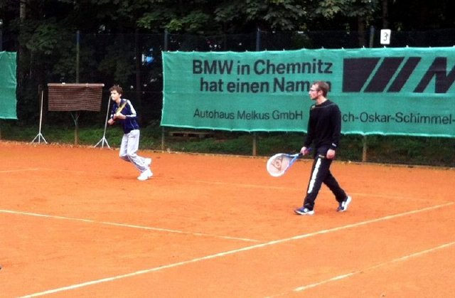 Jugenderfolge bei den BezirksmeisterschaftenIn den letzten zwei Wochen gelang es Annika Rauh zunächst sowohl den Titel im Einzel als auch im Doppel bei den Bezirksmeisterschaten der AK U16 auf ungewohntem Untergrund in Freiberg zu erringen. Gleich eine Woche später stand auf heimischer Anlage im Stadtpark die Meisterschaft der AK U18 statt. Gegen erwartet stärkere Gegner musste sich Annika leider in der ersten Runde im Champions-Tiebreak gegen die spätere Drittplatzierte geschlagen geben. Im Doppel gelang ihr dann die Revanche. An der Seite der zweitplatzierten des Einzels (Lea Zappek) konnte sie den Doppeltitel erringen und das immerhin gegen die amtierenden Doppel-Bezirksmeister der Aktiven - herzlichen Glückwunsch. ![]() Annika Rauh (links) mit ihrer Doppelpartnerin Lea Zappek aus Crimmitschau Parallel zur Bezirkmeisterschaften der AK U18 spielten Lucas Graichen und Tom Pfüller in der AK U14 in Zwickau. Lucas erwischte ein denkbar ungünstiges Los. Sowohl im Einzel als auch im Doppel musste er sofort gegen den Turnierfavoriten und späteren Sieger Morris Baumann aus Reichenbach antreten. Er schlug sich wacker, brachte im Doppel mit zuvor unbekanntem Partner die Favoriten extrem ins Wanken, musste sich jedoch jeweils geschlagen geben. Die Nebenrunde gewann Lucas anschließend quasi konkurrenzlos. Besser erging es Tom. Nach einem sicheren Sieg in Runde 1 musste Tom erst im Halbfinale gegen Morris antreten. Nach der erwarteten Halbfinalniederlage konnte Tom vielleicht etwas überraschend deutlich das Spiel um Platz 3 siegreich gestalten - ein toller Erfolg für Tom und Lucas nicht traurig sein, das nächste Mal gibts bestimmt ein besseres Los. ![]() Tom Pfüller - Platz 3 in der AK U14