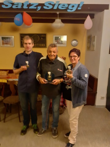Skat- und Pokerturnier - Vorjahressieger knapp geschlagen"Gut Blatt" hieß es am letzten Oktoberwochenende im TG Stadtpark - Klubhaus.Freitag Abend machte das Skatturnier den Anfang. Als Titelverteidiger wieder hoch motiviert setzte sich Bernd Friedrich nach der ersten Runde erneut in Führung. Aufgrund des recht deutlichen Vorsprungs rechneten nahezu alle damit, dass ein erneutes Erfolg wohl kaum zu verhindern ist. Doch oft kommt es anders als man denkt. Vereinsvorsitzender Stefan Thämmig hatte in der zweiten Runde einige Male das Quäntchen Glück, die knappen Spiele zu gewinnen, legte eine ordentliche Punktzahl vor und profitierte von einer schwächeren Runde der Mitkontraheneten, insbesondere des Titelverteidigers. So fing er Bernd noch ab, verwies diesen auf Platz 2 und sicherte sich seine dritten Skattitel im Stadtpark. Auf Platz 3 reizte sich Rainer Bretschneider. ![]() Während Lucas Graichen zum wiederholten Male als Vierter knapp am Podest und Pokal vorbei schrammte, lieferten sich mit seinen Eltern Silvia und Jürgen und unserem Vereinsvorsitzender drei einen spannenden Kampf darum, wer der erste Stadtparker wird, der den Pokertitel zum zweiten Mal gewinnt. Letztlich setzte sich Jürgen vor Silvia und Stefan durch und konnte nach über drei Stunden den Titel Rekordsieger des Pokerturniers sein Eigen nennen. ![]()