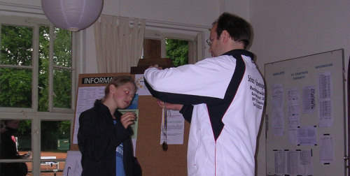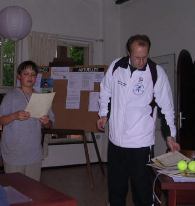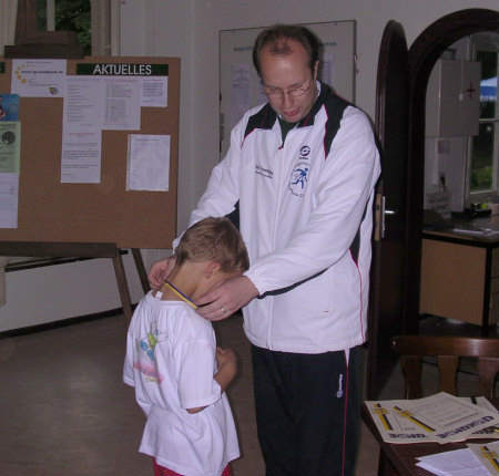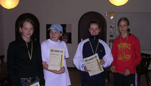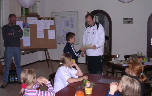![]() Am Freitag, den 10. Juni 2005, trafen sich tennisbegeisterte Kinder und Jugendliche zu den 12. Stadtsportspielen auf unserer Anlage. Die Wettkämpfe im Tennis fanden erstmals innerhalb der Stadtolympiade statt. Gespielt wurde unter Leitung von Andreas Roscher, Yvonne Haag und Julia Groß in den vier Altersklassen U10 gemischt, U12 gemischt, U18 weiblich und U18 männlich. Insgesamt nahmen 21 SportlerInnen daran teil. Die Jungen und Mädchen der U18 und U12 spielten im Gruppenmodus ihren Besten aus. Aufgrund der relativ vielen Teilnehmer in der U10 wurden zwei Gruppen gebildet, deren Erste im direkten Vergleich den Sieger ermittelten. Nach mehr als fünf Stunden Tennis standen die Sieger fest: U18 weiblich: 1. Susan Floß (CTC Küchwald) 2. Julia Reichel (TG Stadtpark) 3. Christin Lange (Postsportverein) ![]() U18 männlich: 1. Hagen Fischer (Postsportverein) 2. Andy Richter (Postsportverein) 3. Bastian Berger (Postsportverein) ![]() U12 gemischt: 1. Vanessa Kotte (Postsportverein) 2. Benjamin Raabe (TG Stadtpark) 3. Michelle Groß (TG Stadtpark) U10 gemischt: 1. Toni Matthes (CTC Küchwald) 2. Dominik Weinberg (TG Stadtpark) 3. Frankziska Hauffen (TGS) und Viet Dang (TGS) ![]()