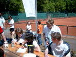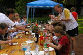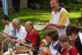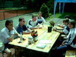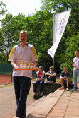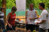 Freizeitspieler nutzen sonnigen Pfingstmontag für Tennis-Turnier. Am Pfingstmontag, 16.05.2005, trafen sich rund 20 Mitglieder der TGS, um am Freizeitspielerturnier bei sonnigem Wetter teilzunehmen. Organisatoren und Schirmherren des Turniers war Familie Groß. Nach dem Begrüßen der Teilnehmer und einem kleinen Gläschen Sekt wurden die Doopel-Paarungen ausgelost. In 3 Spielrunden wurde gekämpft und geschwitzt. Als Sieger gingen hervor: Platz 3: Gerold Beyer Platz 2: Jessica Groß Platz 1: Ingrid Thieme Beim anschließenden Genuss von Gegrilltem und hausgemachten Salaten ließ man den Pfingstmontag in Ruhe ausklingen. |