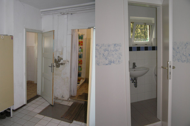 Sanitäranlage im vorher/nachher-Vergleich