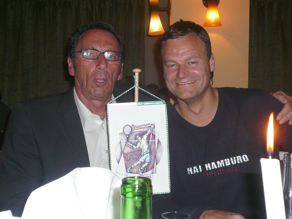 Im Vorfeld muss erwähnt werden, dass diese Turnierwoche durch die wunderbare Anlage und das großartige Management eigentlich besser eine Tennisturnier-Urlaubswoche genannt werden müsste. Nicht umsonst lautet das Aldiana-Motto "Urlaub unter Freunden"! Besonders interessant ist auch, dass im Aldiana das Training von ehemaligen Weltklassespielern geleitet wird. Wir, dass bedeutet Christine und ich, haben dort vor Jahren den Cheftrainer der schwedischen Nationalmannschaft und persönlichen Trainer von Björn Borg, Mr. Lennart Bergelin, kennen gelernt. Leider verstarb Lennart im Jahr 2008. Andere Weltklassespieler wie - und das ist ganz neu - Michael Stich haben Verträge mit Aldiana. In diesem Jahr betreute der ehemalige deutsche Daviscupspieler Jörn Renzenbrink das Training und damit gleichzeitig die Spieler.