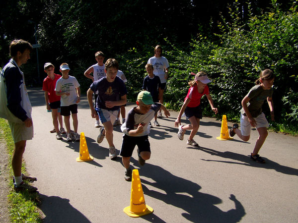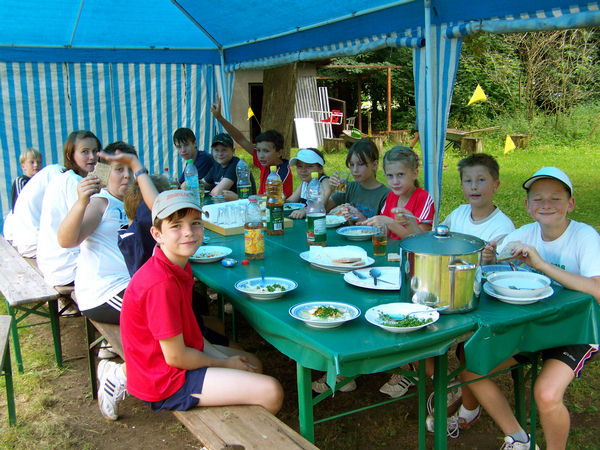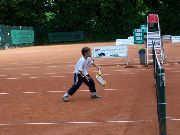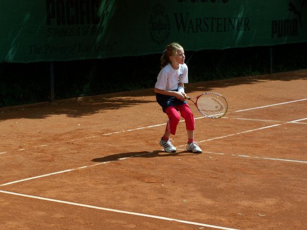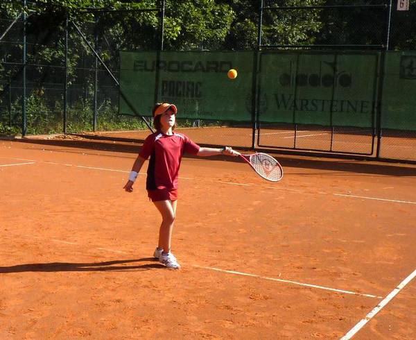 Mag sein, dass der Eine oder Andere die ersten Tage Muskelkater verspürte, aber auch dieser verschwindet irgendwann. Jedenfalls habt ihr alle ein großes LOB verdient. Selbst der jüngste Tennisspieler, Marc, der bei der Teichrunde immer unter den fünf Besten ankam, war am Ende bereit, sich mit der Trainerin im ¾-Feld zu messen! Dominicks Formkurve war wie immer tagesabhängig, stieg aber stetig, bis auf den letzten Tag, wo er höchstwahrscheinlich den nächtlichen Orientierungslauf noch in den Knochen spürte. Victor, der am Ende der Woche nicht nur alle seine Spiele gewann und nach dem Camp noch freiwillig zwei Stunden spielte, war sichtlich mit sich zufrieden. Dasselbe traf auch für Felix und Nick zu, die noch unbedingt ein Match spielen wollten. Für Felix war dies allerdings der Knockout, der nicht nur das Match verlor sondern wegen Erschöpfung gleich auf dem Stuhl ein zweistündiges Nickerchen hielt! Aber auch unsere weiblichen Tennisspielerinnen spielten vom ersten bis hin zum letzten Ball alles mit.
