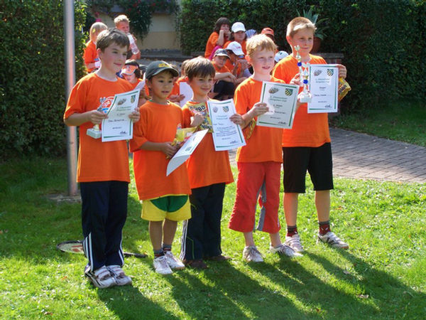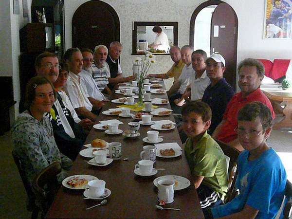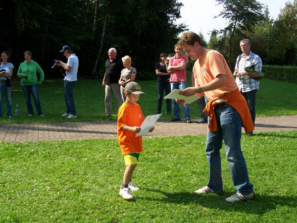 Sommerfest 2009 Ein Sommerfest braucht gutes Wetter. Und wie in den letzten Jahren erhörte Petrus uns. Es war Sonnenschein ohne Ende! Vieleicht zu schön, denn die Teilnehmerzahl war geringer als 2008. Dafür waren die Gespräche umso intensiver. Man hatte mehr Zeit verwendet für das Miteinander im Gespräch und weniger für den harten sportlichen Wettkampf. Als Novum hatte der Vorstand zum gemeinsamen Frühstück eingeladen. Das bedeutete zeitig aufstehen, aber allen Teilnehmern machte es großen Spaß. Nach den anschließenden Wettkämpfen, wie schon erwähnt, ganz locker und gelassen im Schleifchenturnierformat, mit Preisträgern welche nie daran geglaubt hätten Preise zu gewinnen, wurde gegrillt und gescherzt. Unterstützt wurden wir - was die Würstchen betrifft - wieder großartig von unserer Vereinsfleischerei Einert. Herr Michael Einert hat als Vereinsmitglied ein offenes Herz für die Unterstützung. Wir danken ihm dafür!! Wir, dass sind z.B. die frohgelaunten Ehepaare auf den Bildern und vor allem die Kinder welche an diesem Sommerfest teilgenommen haben. Das es zum Ausklang natürlich auch Alkohol gab, versteht sich von selbst. Den glücklichen und gutgelaunten Ehepaaren sah man es deutlich an. Euer Claus Tanneberger