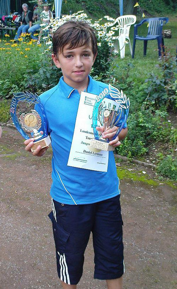 Die Turnierzeit 2010 geht zu Ende - Sächsische Meisterschaften der Kinder in der Altersklasse U 10Vom 14. zum 15.08.2010 fanden auf der Anlage der TG Stadtpark die Sächsischen Meisterschaften der Kinder statt. Dabei konnte sich die Turnierleitung, Frau Greichen & Frau Groß, auszeichnen. Mit ihrem Team der Helfer, den Platzmeistern und der Küche, wurde die Meisterleistung der Versorgung von über 70 Kindern und deren Betreuer zur Zufriedenheit aller Teilnehmer vollbracht. Dafür gebührt den Organisatoren ein großes Lob! Vom Gastgeberteam, der TG Stadtpark Chemnitz, gibt es gute Nachichten. Daniel Lermann ( siehe Foto ) wurde sächsischer Vizemeister der Kombinationswertung aus Athletik und Tennis. In der reinen Tennisdisziplin wurde Daniel klarer Sieger. Durch diesen Tenniserfolg hat sich Daniel die Aufnahme in Landesauswahl von Sachsen erspilet. Wir gratulieren und wünschen für die Zukunft Gesundheit und weitere Erfolge. Der Vorstand der TG Stadtpark