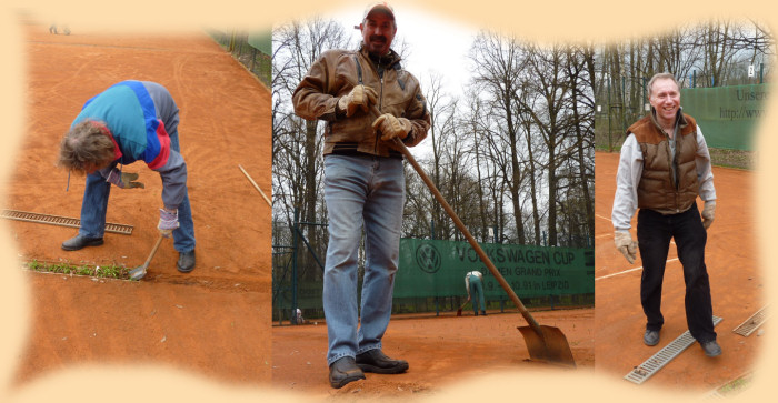 Arbeitseinsatz 2010 Wir bitten alle Vereinsmitglieder zur Ableistung der Arbeitsstunden, damit die Plätze pünktlich für Trainingsmöglichkeiten fertig sind. Trotz des Schmuddelwetters kamen einige zum Arbeitseinsatz und holten gleich zum Rund-Um-Schlag aus um, unsere Plätze von den tausenden "Ahorn-Nasen" zu befreien. Bis allerdings die erste Filzkugel auf der Anlage gespielt werden kann, gibt es noch einiges zu erledigen!