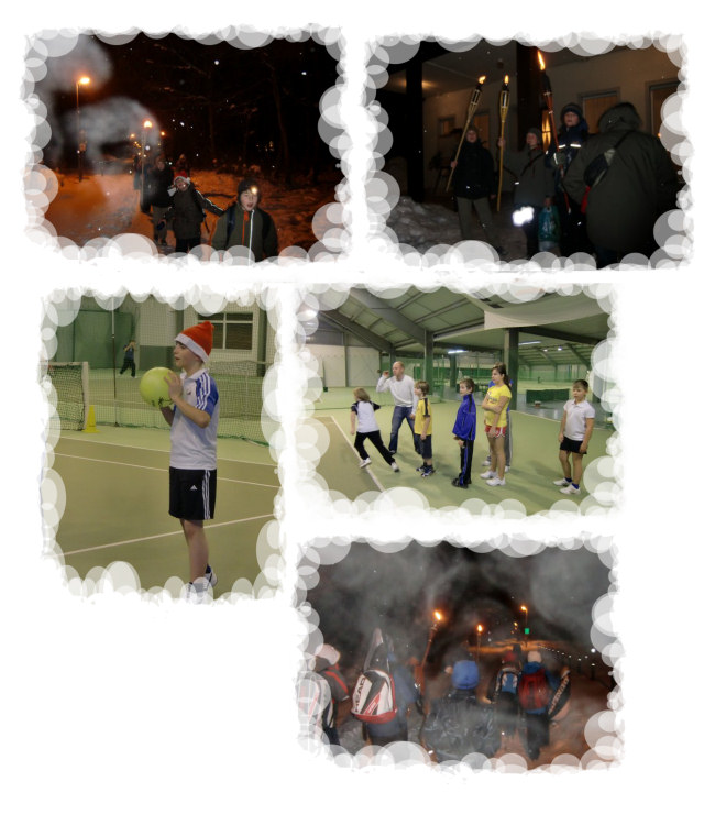 Dezember 2010 Tennis WeihnachtsfeierTrotz der chaotischen Witterungsbedingungen kamen 20 Kinder zur ersten Weihnachtsfeier im Stadtpark. Bevor es zu weihnachtlicher Stimmung kam, trafen wir uns erst mal im Sportcenter, um uns auszupowern. Anschließend stand bei klirrender Kälte eine Fackelwanderung durch den stockdunklen Stadtpark auf dem Spielplan mit dem Ziel, in unserem Vereinsheim einzukehren. Das Kaminfeuer verbreitete eine weihnachtliche Stimmung, so dass bei angenehmen Temperaturen die Bescherung los gehen konnte. Zur Stärkung wurde von unserem Küchenteam Waffeln, Glühwein und Punsch vorbereitet. Um ein Geschenk vom Weihnachtsmann zu erhalten, musste jeder etwas vortragen! Das Trainerteam wünscht allen Kindern und Eltern ein besinnliches Weihnachtsfest...