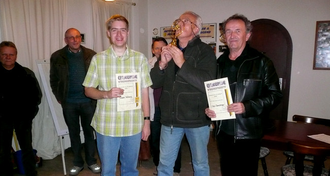 Das Bild der drei Sieger: von links nach rechts - Stefan Thämmig ( zweiter Platz ) Manfred Lasch ( Sieger ) Claus Tanneberger ( 3. Platz ) Das Ergebnis des Skatturniers könnt ihr hier (pdf-Dokument) einsehen.