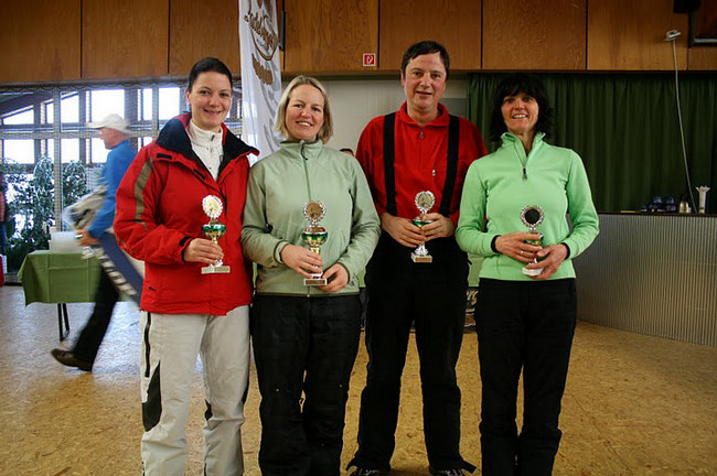Winter 2010 / 2011 Tennis-Ski Meisterschaft 2011Zur diesjährigen 13.offenen Sächsischen Ski-Tennis-Meisterschaft,die mit 105 Teilnehmern aus insgesamt 5 Landesverbänden einen neuen Teilnehmerrekord verbuchen konnte, gab es für unseren Tennisverein 4 Pokalgewinne zu verbuchen. Die TG-Stadtpark war somit erfolgreichster Verein bei den diesjährigen Tennis-Ski-Meisterschaft! Wir gratulieren den Teilnehmer der TGS. Auf dem Bild von links nach rechts: Katja Becher (2.Platz Aktive ),Katja Thieme (Sieger AK 30),Andreas Becher (2.Platz AK 55),Doris Becher (3.Platz AK 50)